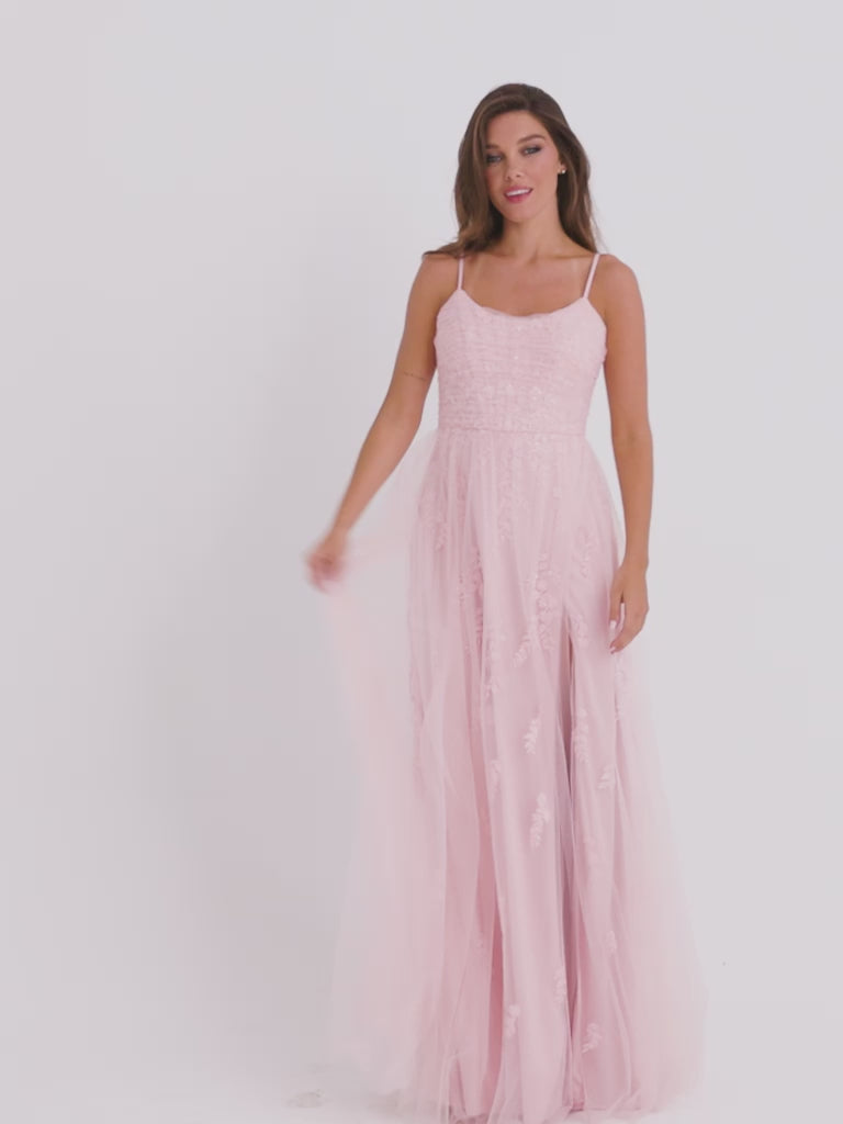 This beautiful dress features a scoop neckline enhanced with delicate beaded appliqué, adding subtle sparkle and charm. The tulle overlay creates a soft, flowy silhouette that moves gracefully, providing both comfort and elegance. Perfect for special occasions, this dress is sure to help you feel confident and radiant every time you wear it. Also available in Plus Size: Faviana Style 9598!