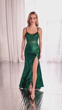 CL6177 Satin Side Beaded Cami Gown